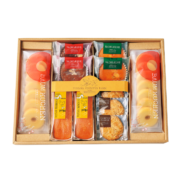 自然の恵みにあふれた環境で育った鶏からとれる、新鮮な有精卵を使ったスイーツは多くのお客様に愛されています。深川カントリーファームが生み出すスイーツはたまごのコクがありながら、自然で上品な甘さ、素朴で飽きのこない味わいが魅力です。1層ずつ丁寧に焼き上げたバームクーヘンをはじめ、ふんわりマドレーヌ、ざくざく食感のオートミールクッキーなどバラエティ豊かな詰合せ。 -