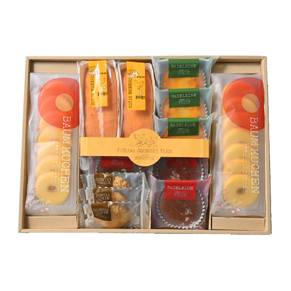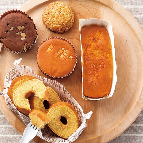 元気なたまごをたっぷりと。ちょっと贅沢なティータイム。有精卵をたっぷり使ったスイーツの詰合せ。ミニバームクーヘンや、二つの味のマドレーヌなどバラエティ豊富だから、みんなの集まりが華やぎます。 -