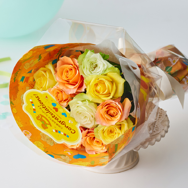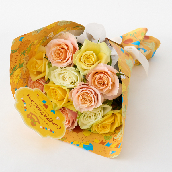 内容 お任せバラ(ビタミンカラー系)×12本、栄養剤10ml(50倍希釈タイプ)、お手入れのしおり付き