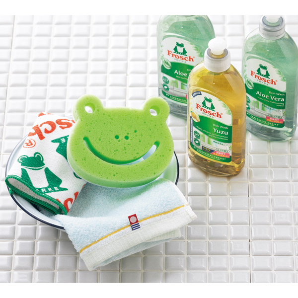 フロッシュは自然界の微生物の働きにより、ほぼ100%が自然に還る環境配慮型の洗剤です。手肌にやさしく、毎日の食器洗いに安心してお使いいただけます。