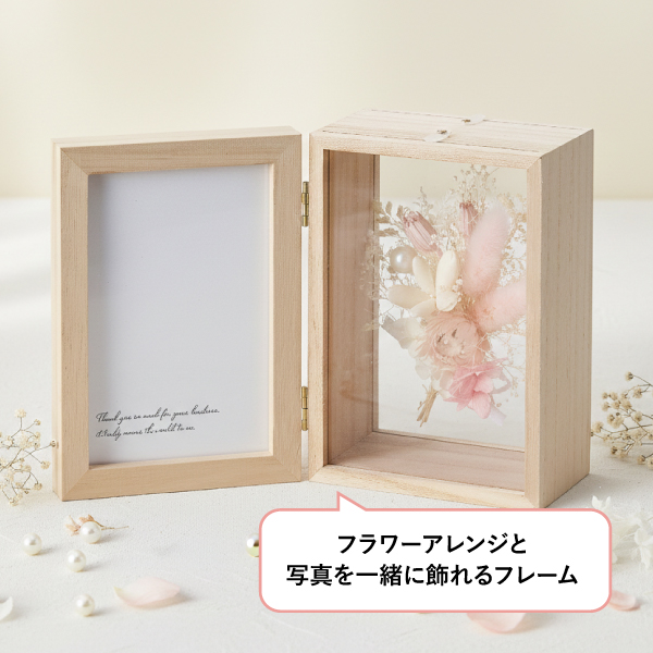 ドライフラワーとプリザーブドフラワーを美しく閉じ込めたフラワーフレーム。上質なデザインで、インテリアとして長く楽しむことができます。感謝の気持ちが伝わるフラワーギフトです。 -